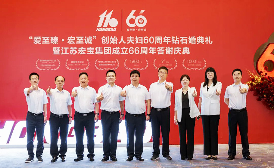 | 2024年9月20日,江蘇宏寶集團(tuán)公司迎來了建廠66周年,恰逢創(chuàng)始人朱玉寶夫婦結(jié)婚60周年紀(jì)念日?!皭壑琳椤ず曛琳\”創(chuàng)始人夫婦60周年鉆石婚典禮暨江蘇宏寶集團(tuán)成立66周年答謝慶典隆重舉行。來自社會各界友人、宏寶集團(tuán)中層以上干部及家屬和員工代表們歡聚一堂,共襄盛典。 |