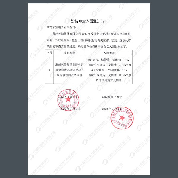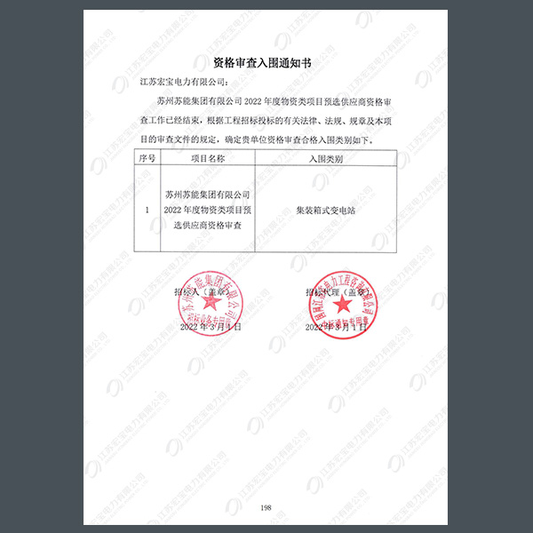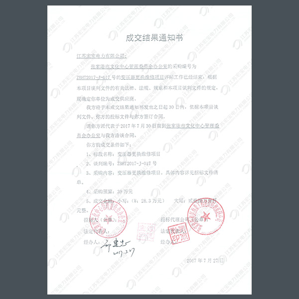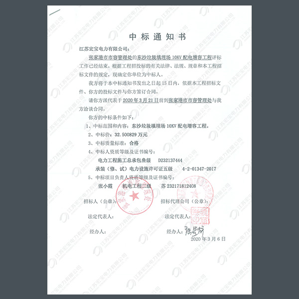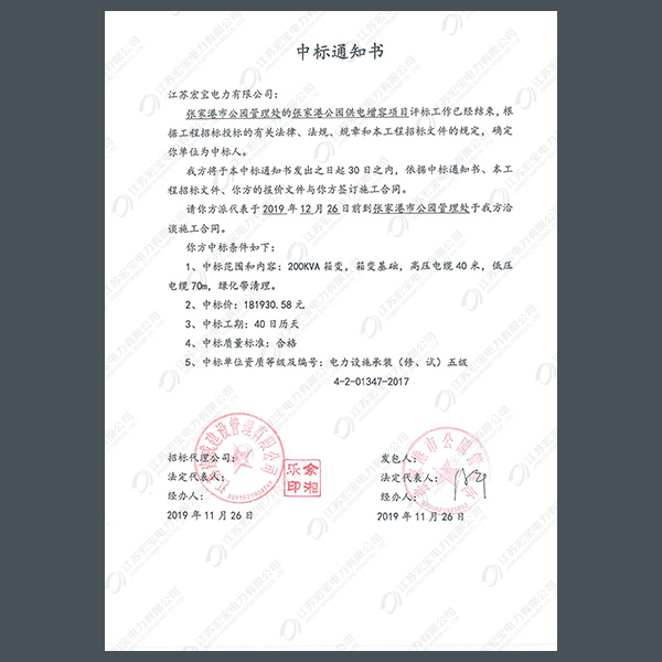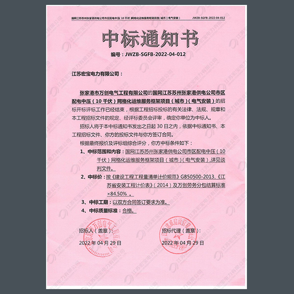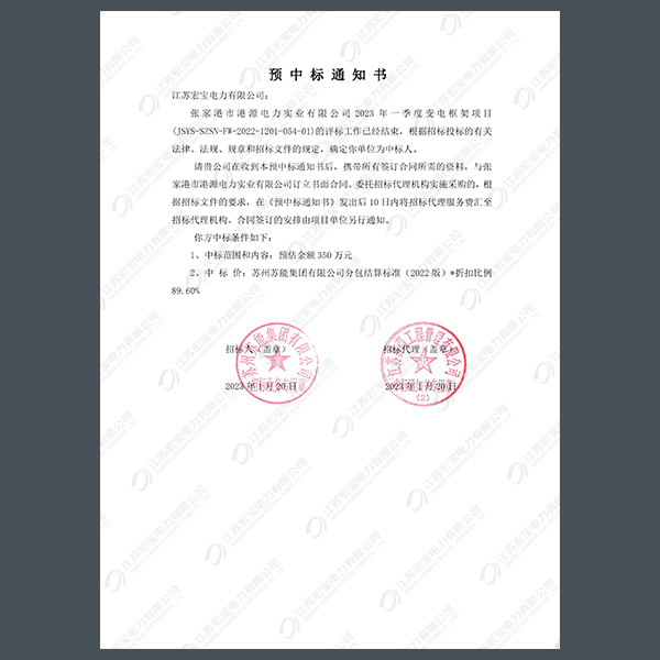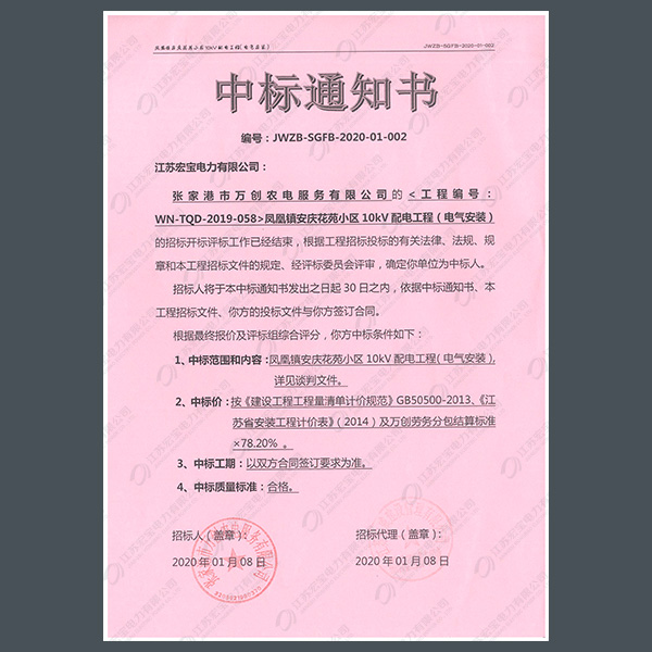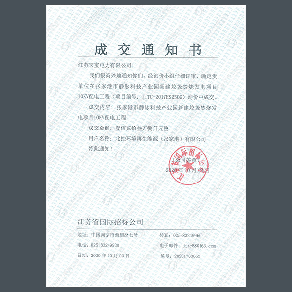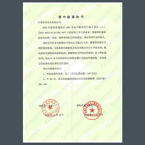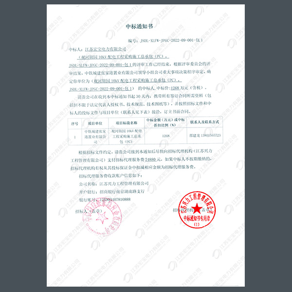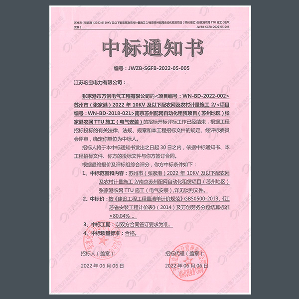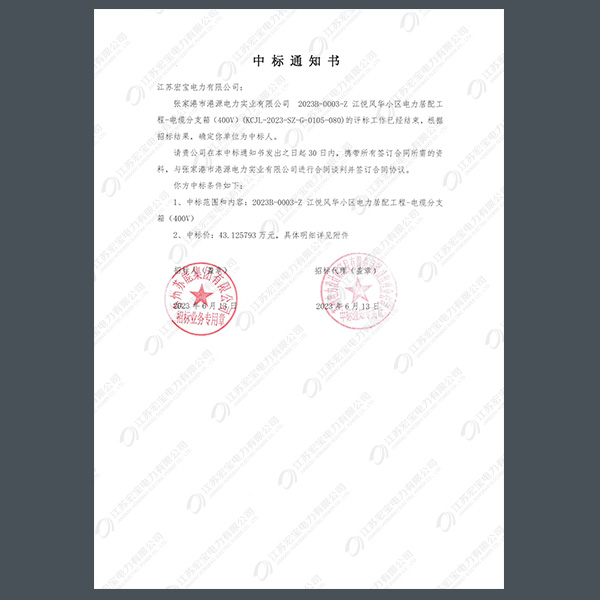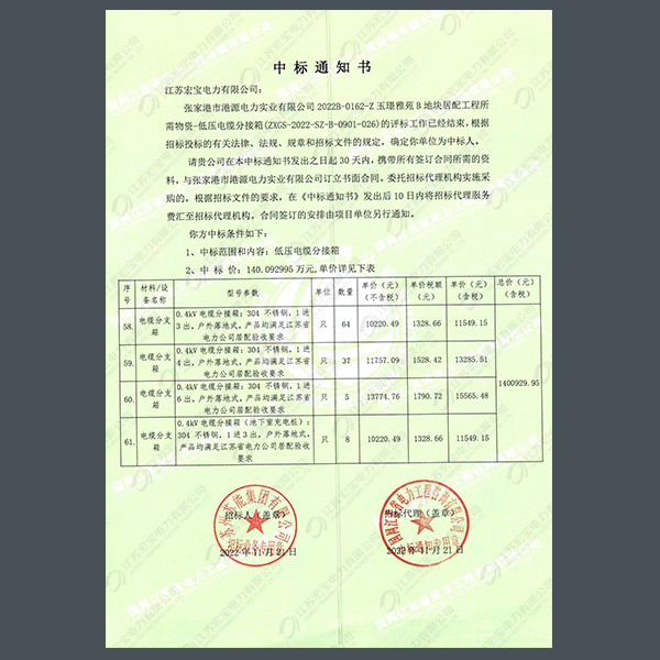 400V電纜分支箱中標(biāo)通知書(shū)